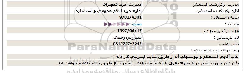 اداره برگزارکننده استعلام:  اداره خرید اقلام عمومی و استاندارد