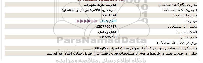 اداره برگزارکننده استعلام: اداره خرید اقلام عمومی و استاندارد