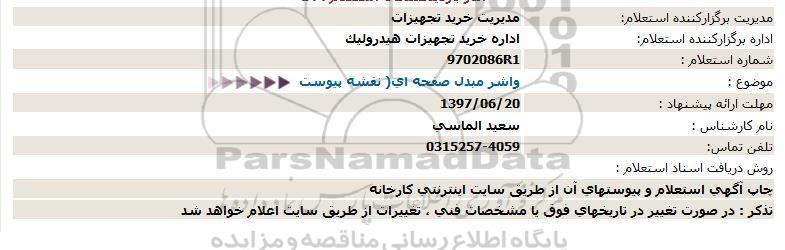 اداره برگزارکننده استعلام:     اداره خرید تجهیزات هیدرولیک