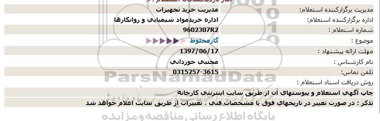 اداره برگزارکننده استعلام اداره خرید مواد شیمیایی و روانکارها
