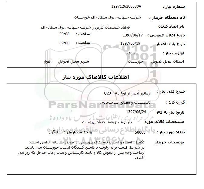 نام دستگاه خریدار: شرکت سهامی برق منطقه ای خوزستان