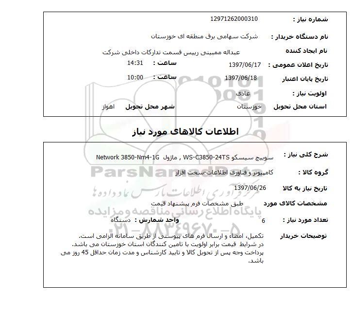 نام دستگاه خریدار: شرکت سهامی برق منطقه ای خوزستان