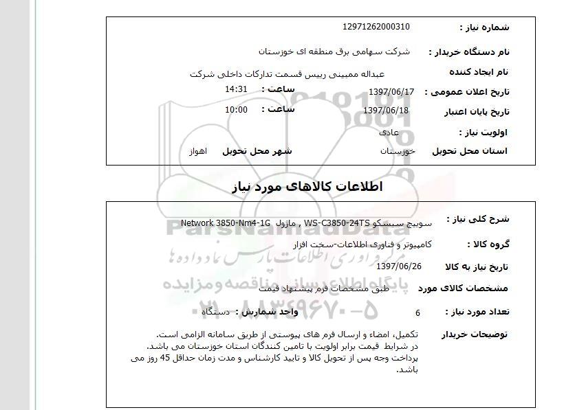 نام دستگاه خریدار: شرکت سهامی برق منطقه ای خوزستان