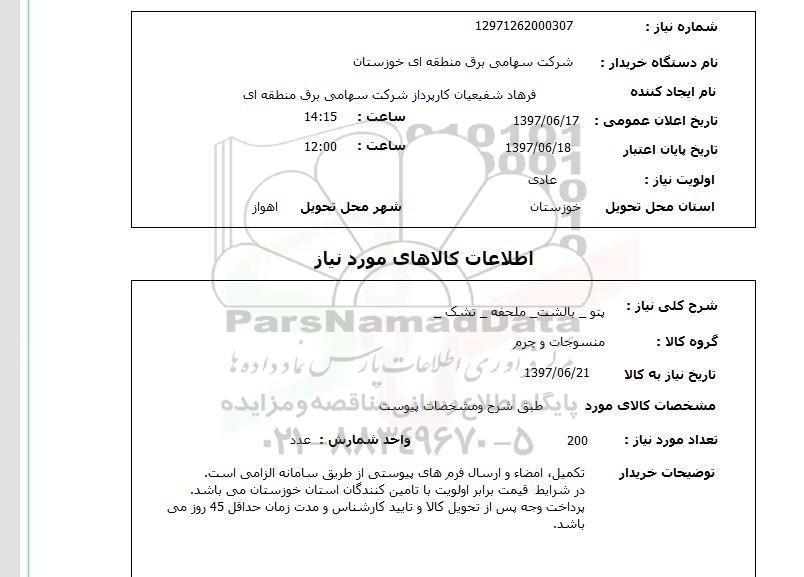 دستگاه خریدار: شرکت سهامی برق منطقه ای خوزستان