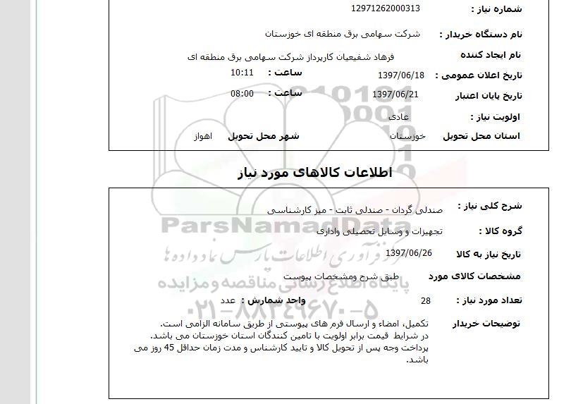 استعلام صندلی گردان - صندلی ثابت - میز کارشناسی , استعلام, صندلی گردان - صندلی ثابت - میز کارشناسی