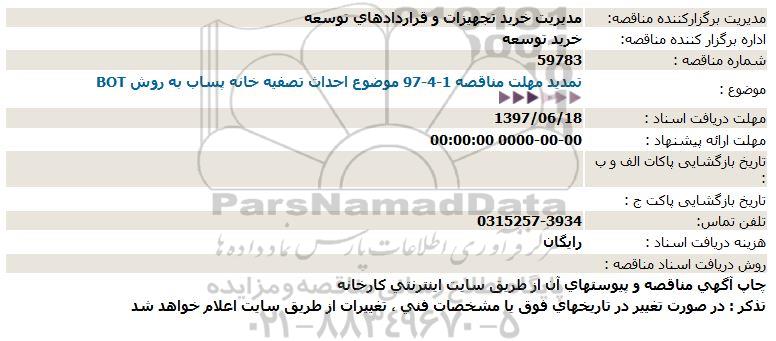 موضوع :     تمديد مهلت مناقصه 1-4-97 موضوع احداث تصفيه خانه پساب به روش BOT