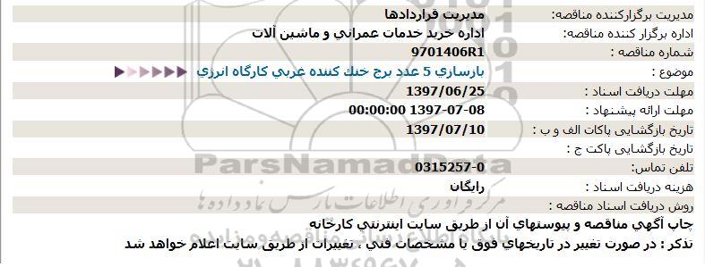 استعلام بازسازی 5 عدد برج خنک کننده غربی کارگاه انرژی , استعلام, استعلام بازسازی 5 عدد برج خنک کننده غربی کارگاه انرژی