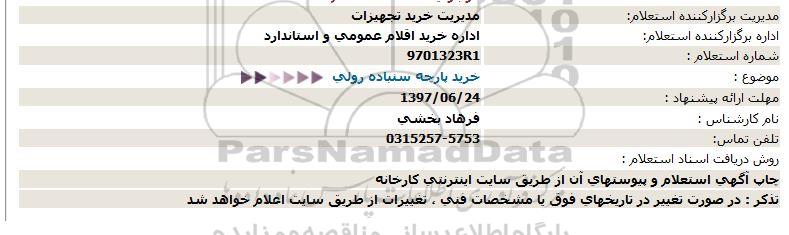 اداره برگزارکننده استعلام: اداره خرید اقلام عمومی و استاندارد