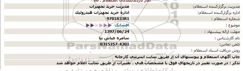 اداره برگزارکننده استعلام: اداره خرید تجهیزات هیدرولیک