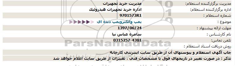 استعلام پمپ و الکتروپمپ دنده ای , استعلام , استعلام پمپ و الکتروپمپ دنده ای