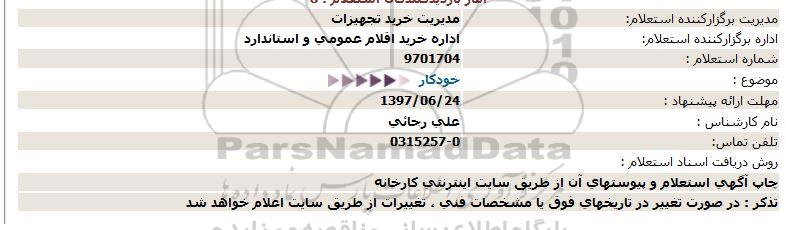 اداره برگزارکننده استعلام: اداره خرید اقلام عمومی و استاندارد