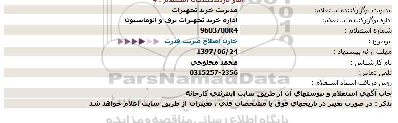 اداره برگزارکننده استعلام: اداره خرید تجهیزات برق و اتوماسیون