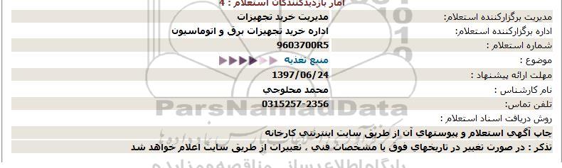 اداره برگزارکننده استعلام: اداره خرید تجهیزات برق و اتوماسیون