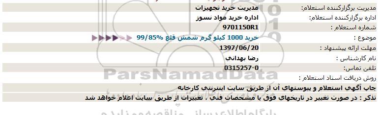 موضوع : خرید 1000 کیلوگرم شمش قلع 99/85%