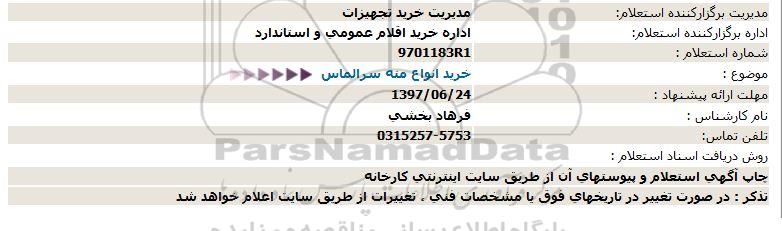 اداره برگزارکننده استعلام: اداره خرید اقلام عمومی و استاندارد