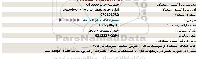 اداره برگزارکننده استعلام: اداره خرید تجهیزات برق و اتوماسیون