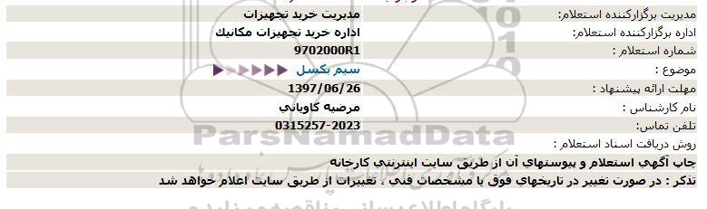 اداره برگزارکننده استعلام: اداره خرید تجهیزات مکانیک
