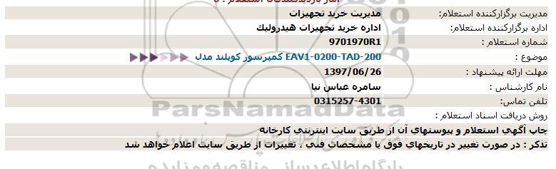 اداره برگزارکننده استعلام: اداره خرید تجهیزات هیدرولیک