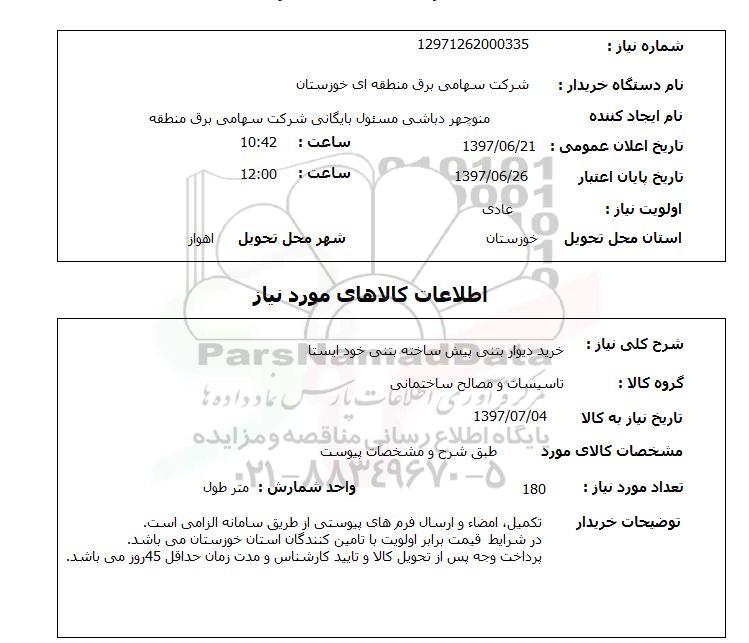 نام دستگاه خریدار شرکت سهامی برق منطقه ای خوزستان