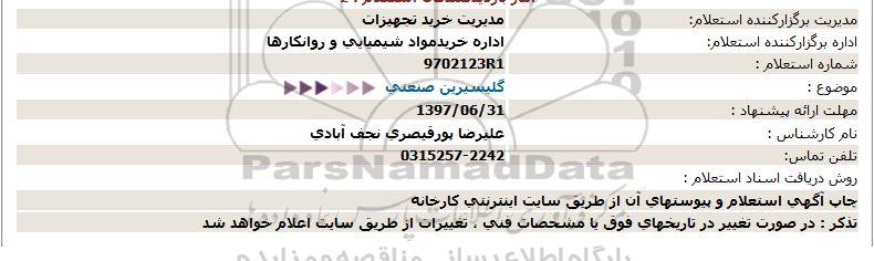 اداره برگزارکننده استعلام: اداره خرید مواد شیمیایی و روانکارها