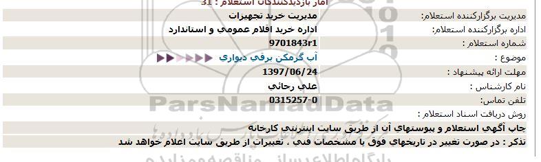 استعلام آب گرمکن برقی دیواری, استعلام , استعلام آب گرمکن برقی دیواری