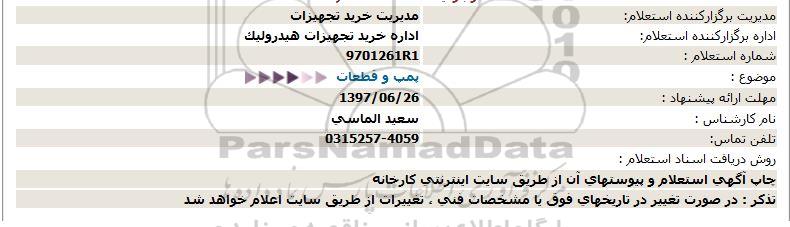 استعلام پمپ و قطعات, استعلام , استعلام پمپ و قطعات