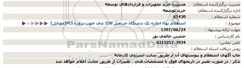 موضوع : استعلام بهاء اجاره یک دستگاه جرثقیل 250 تنی جهت پروژه PCI (موبایل)