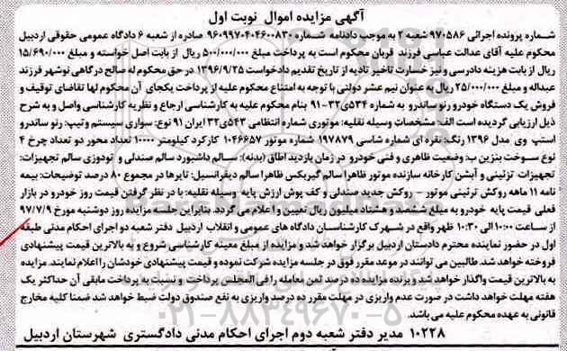 زمان مزایده روز دوشنبه مورخ 97.7.9 از ساعت 10 الی 10/30 صبح