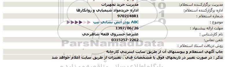 اداره برگزار کننده استعلام: اداره خرید مواد شیمیایی و روانكارها