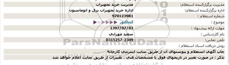 اداره برگزارکننده استعلام: اداره خرید تجهیزات برق و اتوماسیون