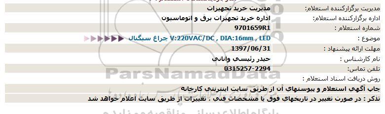 موضوع: چراغ سیگنال V:220VAC/DC DIA:16mm LED