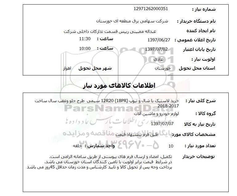 نام دستگاه خریدار: شرکت سهامی برق منطقه ای خوزستان