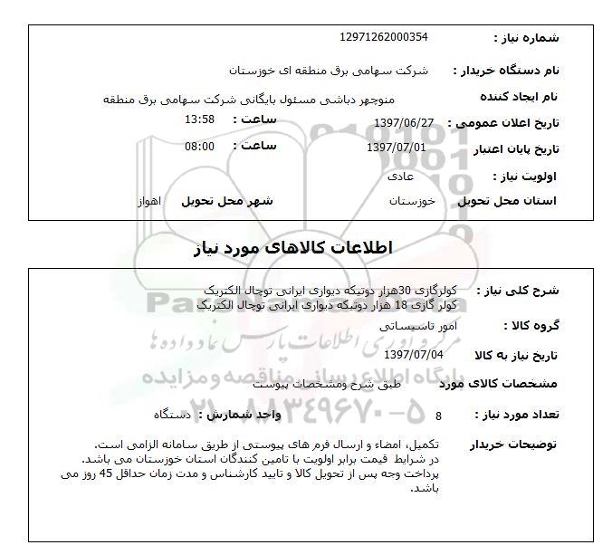 شماره نیاز 12971262000354
