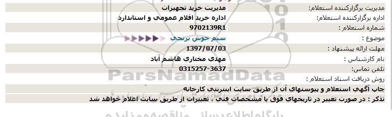 اداره برگزار کننده استعلام : اداره خرید اقلام عمومی و استاندارد