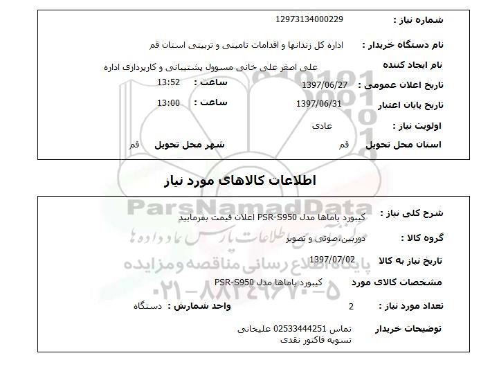 نام دستگاه خریدار اداره کل زندانها و اقدامات تامینی و تربیتی استان قم