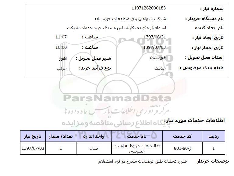 نام دستگاه خریدار: شرکت سهامی برق منطقه ای خوزستان