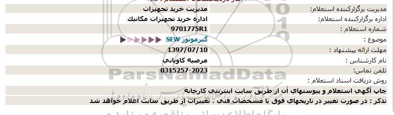 استعلام گیرموتور SEW, استعلام, استعلام گیرموتور SEW