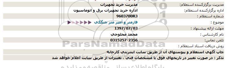 اداره برگزارکننده استعلام: اداره خرید تجهیزات برق و اتوماسیون