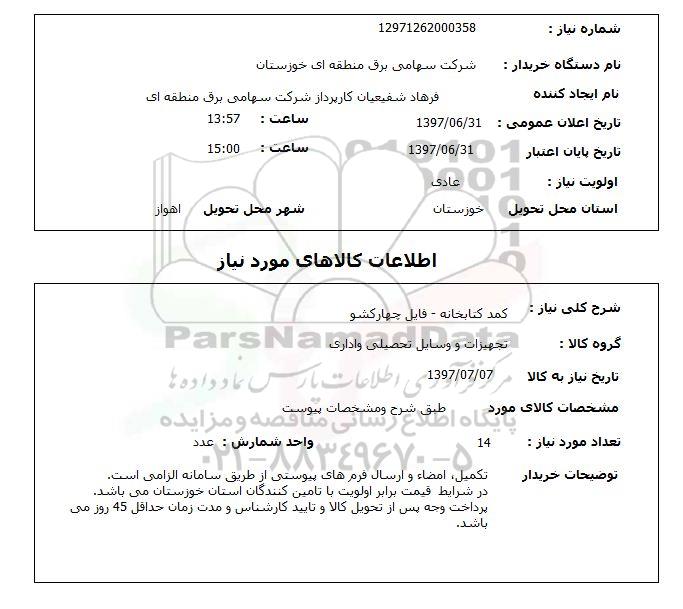 نام دستگاه خریدار : شرکت سهامی برق منطقه ای خوزستان