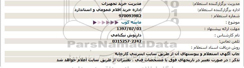 اداره برگزارکننده استعلام:     اداره خرید اقلام عمومی و استاندارد