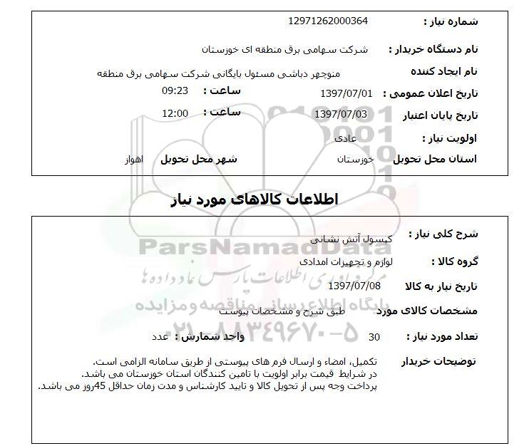 نام دستگاه خریدار : شرکت سهامی برق منطقه ای خوزستان