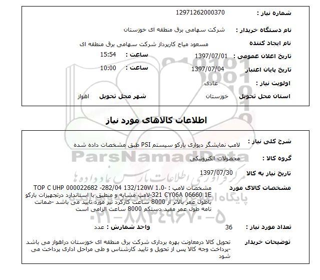 نام دستگاه خریدار: شرکت سهامی برق منطقه ای خوزستان