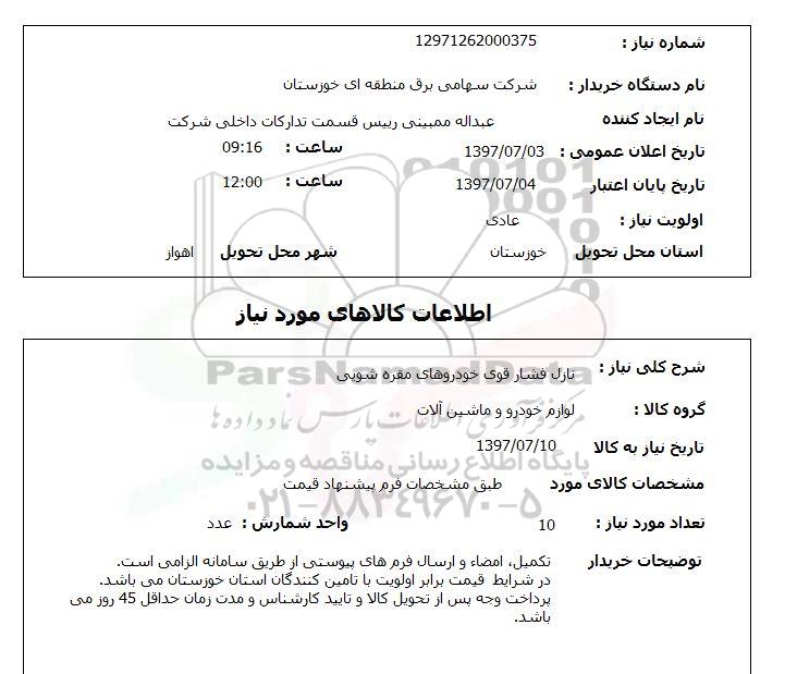 نام دستگاه خریدار : شرکت سهامی برق منطقه ای خوزستان