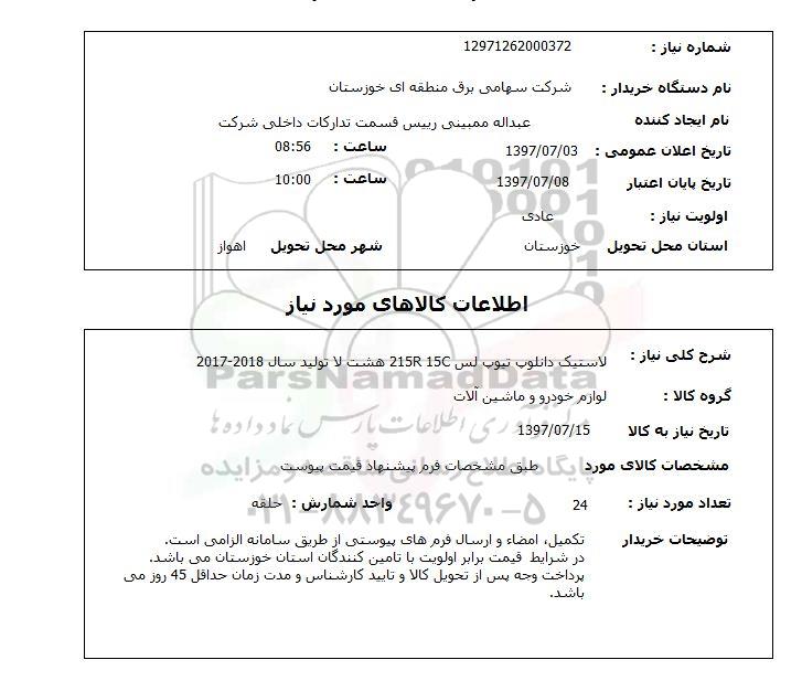 شرح کلی نیاز: لاستیک دانلوپ تیوپ لس 215R 15C هشت لا تولید سال 2018-2017