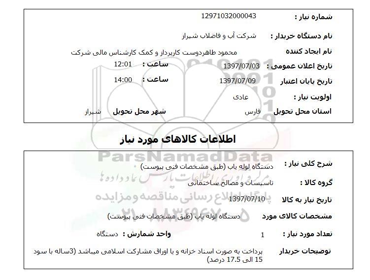 نام دستگاه خریدار: شرکت آب و فاضلاب شیراز
