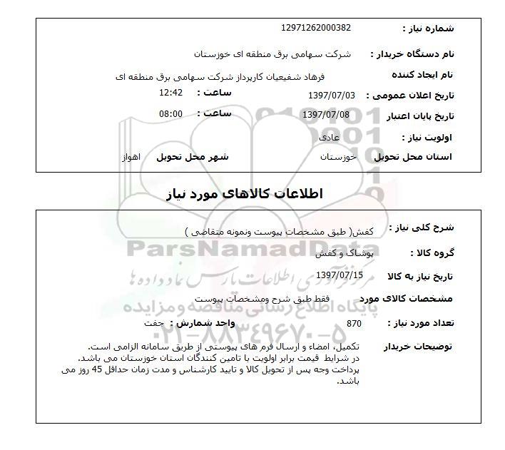 نام دستگاه خریدار: شرکت سهامی برق منطقه ای خوزستان