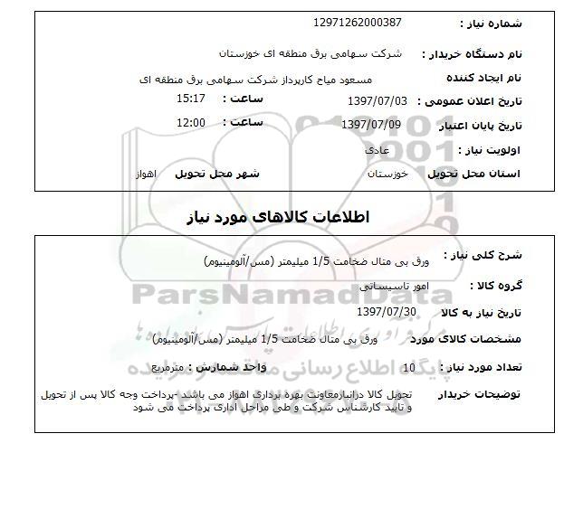 شرح کلی نیاز:   ورق بی منال ضخامت 1/5 میلیمتر (مس / آلومینیوم)