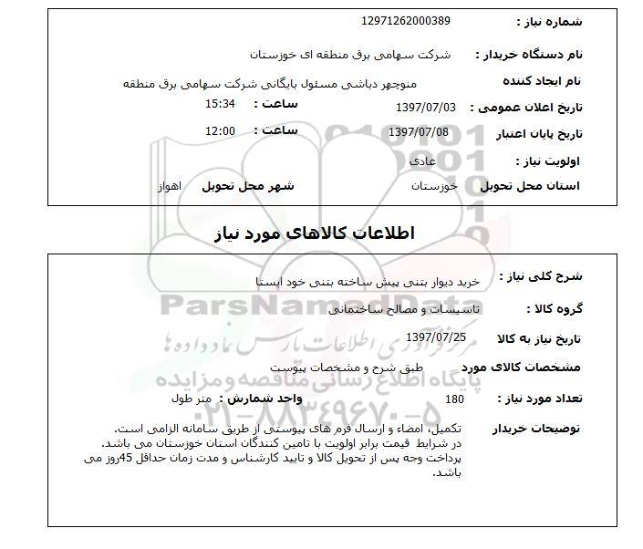 نام دستگاه خریدار: شرکت سهامی برق منطقه ای خوزستان