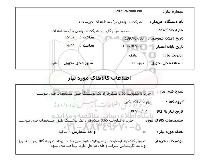 نام دستگاه خریدار : شرکت سهامی برق منطقه ای خوزستان