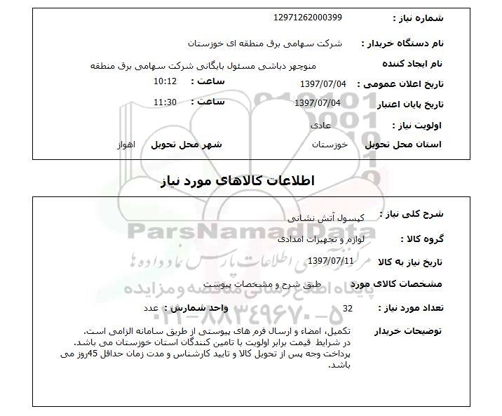 نام دستگاه خریدار :    شرکت سهامی برق منطقه ای خوزستان